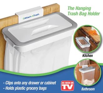 Обновленный навесной держатель для мусорного пакета Bag Holder теперь с крышкой. Навесной держатель для мусорного пакета Bag Holder с крышкой позволяет экономить место и удобен для быстрого удаления отходов при приготовлении блюд, благодаря универсальности крепления. Держатель для мусорного пакета можно повесить на дверку напольного шкафчика или дверцу выдвижного ящика, подходят практические любые пакеты или мусорные мешки. Отлично подходит для кухни, ванной комнаты, гаража, кемпинга.